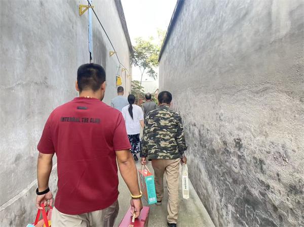 门开的瞬间,老党员虽身形略显佝偻,但看到我们,眼里立刻泛起了光亮,粗糙的手紧紧握住协会党支部书记李斐的手,反复念叨着“还惦记着我们,谢谢谢谢”。