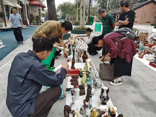 会场空气中有酒的醇香,场地摆放的酒器有从古朴的酒壶、酒樽,到造型别致的玻璃酒瓶、金属浮雕纪念酒罐等,标注着年代、工艺与背后的故事。参会者们或俯身细观,指尖轻轻拂过瓷酒器的细腻釉面,或三五成群围观,手里捧着自己带来的“珍藏”交流心得,引得周围人频频点头。