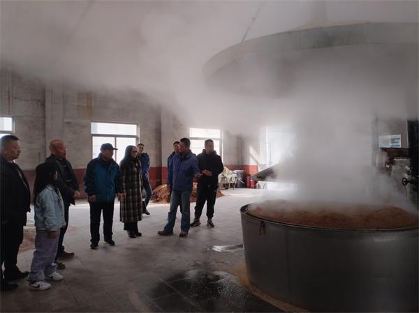 在董事长的引领下,一行人先后走访了酿酒车间、储酒库区、灌装生产线等核心区域。他结合企业发展历程,生动描述了青竹酒从原料甄选、古法酿造到现代化灌装的全流程,是获“河北老字号”的非遗佳酿,历史可追溯至晋代“遂州醇醪”,依托太行山瀑河甘泉与红粘土窖池,以五粮古法酿造。醇厚的酒香弥漫在车间的每个角落,传统工艺“老五甑”法与现代技术的融合碰撞,让协会成员们深切感受到青竹酿酒深厚的产业底蕴与匠心精神。参观过程中,大家不时驻足交流,围绕酒与器文化的关联性展开探讨,现场氛围热烈而融洽。